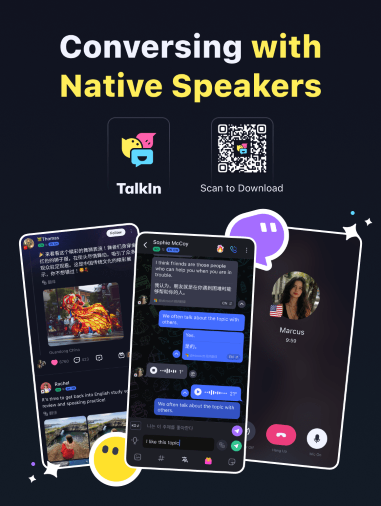 🎙️ Voice Chat Rooms: Drop into real-time rooms on any topic—language practice, cultural chats, music sharing—and join live conversations without pressure.